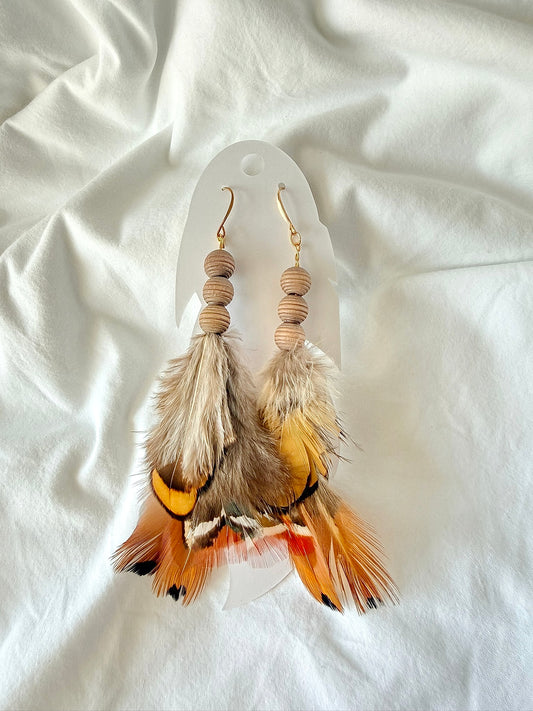 Pheasant Feathers w/toho beads - Indigenous Handmade Earrings