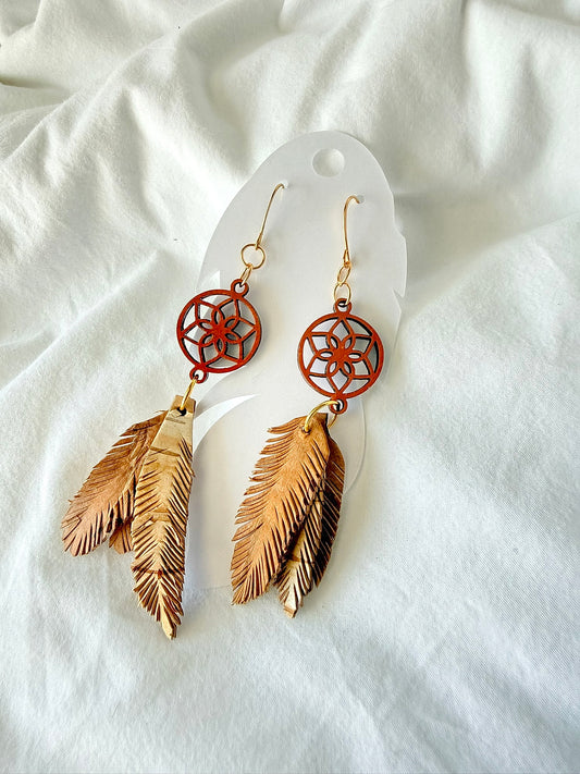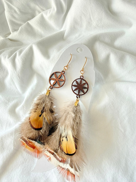 Basswood w/Pheasant Feathers - Indigenous Handmade Earrings