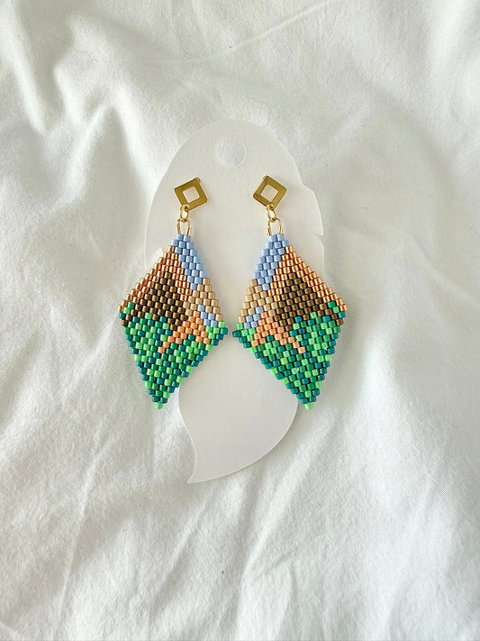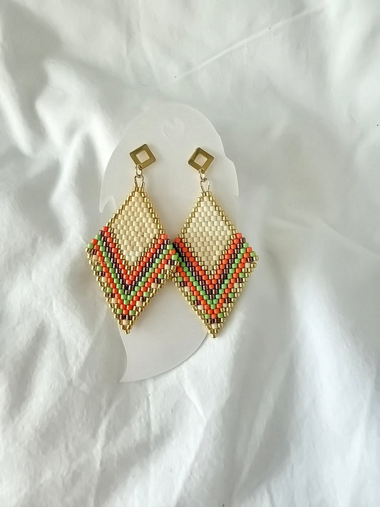 Miyuki Triangle: Mountains (orange) - Indigenous Handmade Earrings