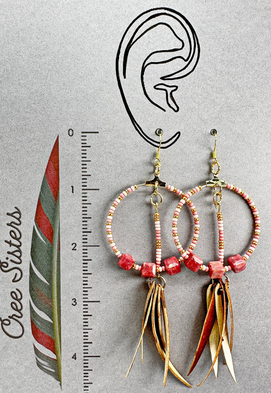 Indigenous Handcrafted Earrings - Beaded w/ Deer Leather, Rhodonite, Agate, & Howlite
