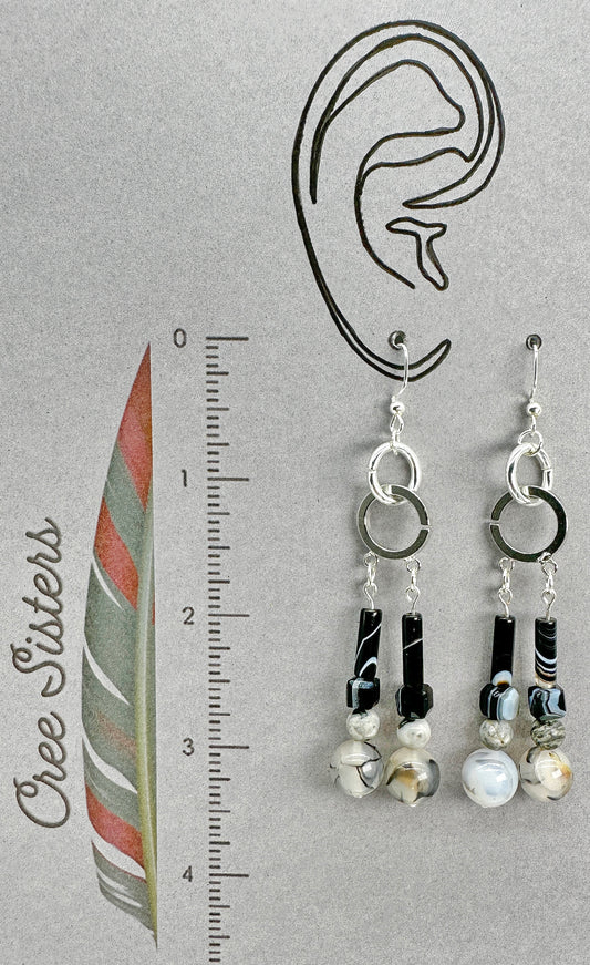 Indigenous Handcrafted Earrings - Beaded w/ Dragon Vein Agate, Sardonyx, & Tuxedo Agate