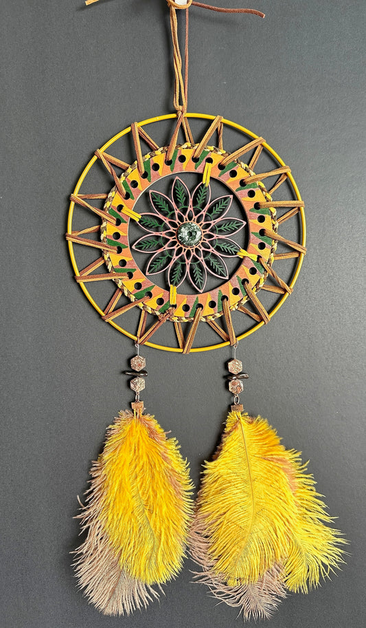 Hand painted Wooden Dreamcatcher w/ Imperial Jasper, Serpentine, Ostrich Feather (XL)