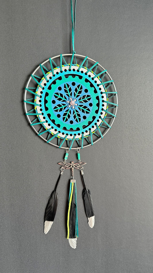 Hand painted Wooden Dreamcatcher w/ Malachite, Sodalite, Two-Spirit Colours (M)
