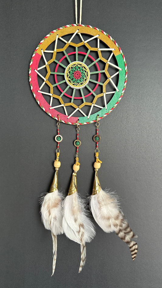Hand painted Wooden Dreamcatcher w/ Malachite, Two-Spirit Colours (M)