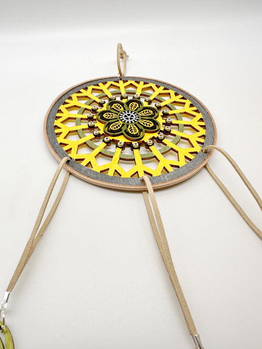 Hand painted Wooden Dreamcatcher w/ Deer Hide Lace (M)