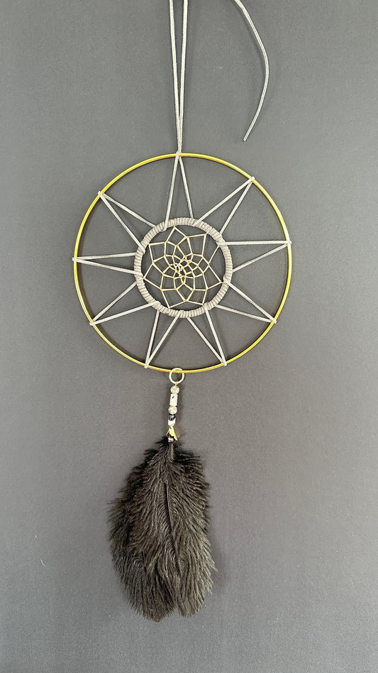 Hand Crafted Dreamcatcher w/Mother-of-Pearl, Maifanite, Ostrich Feather (L)
