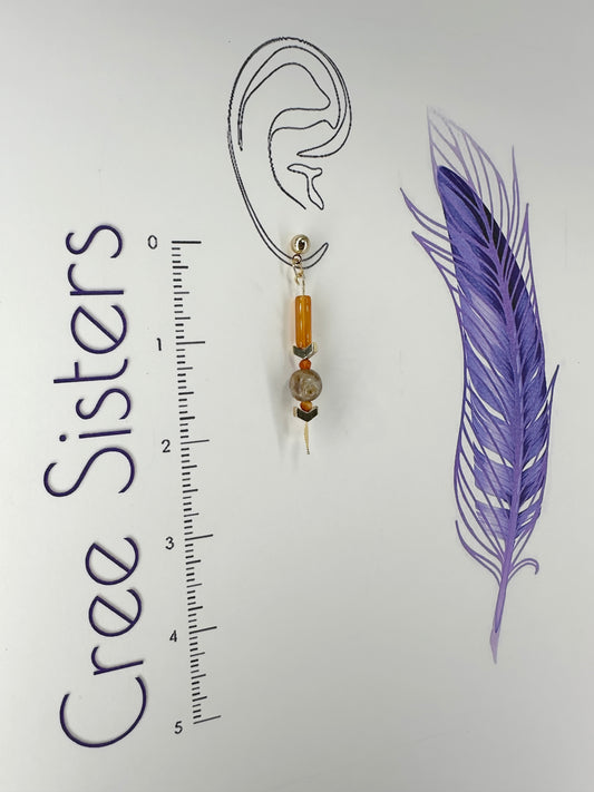 Boucles d'oreilles indigènes faites à la main - stéatite, hématite et cornaline