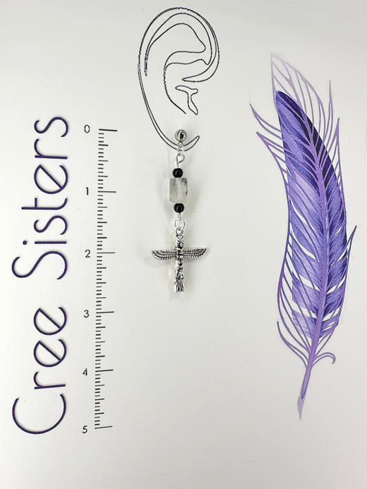Boucles d'oreilles indigènes faites à la main - Quartz rutile, jaspe noir et « Thunderbird »