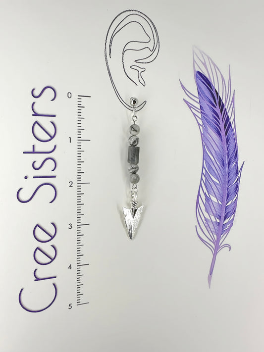 Boucles d'oreilles indigènes faites à la main - Labradorite et jaspe cartographique