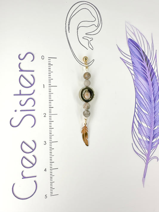 Boucles d'oreilles indigènes faites à la main - Feldspath et hématite