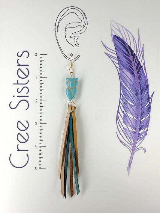 Boucles d'oreilles indigènes faites à la main - Hibou turquoise