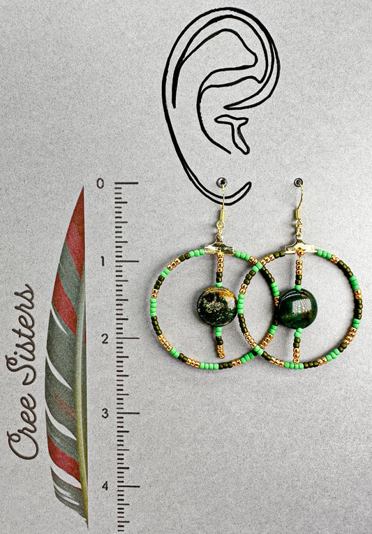 Boucles d'oreilles artisanales indigènes - Perles de jaspe beurre, malachite, jade, nacre naturelle, péridot