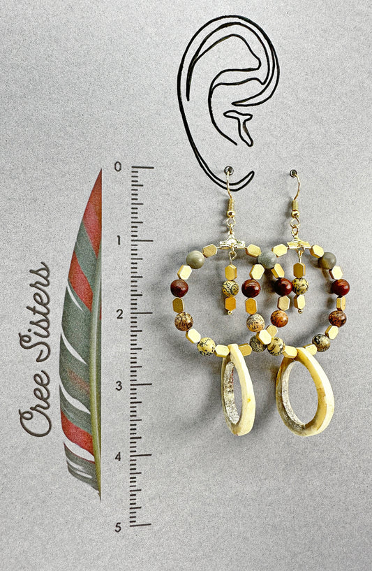 Boucles d'oreilles artisanales autochtones - Perles en bois de caribou, jaspe artistique et hématite