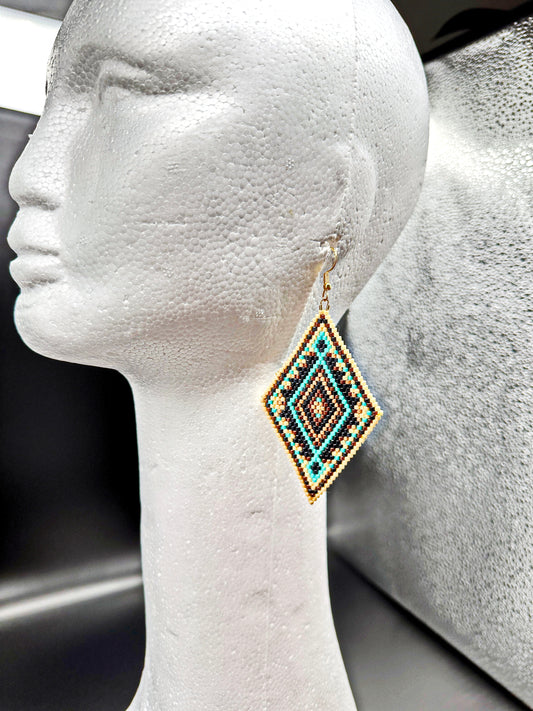 Boucles d'oreilles en perles artisanales indigènes - Série « Forme » - Œil de diamant