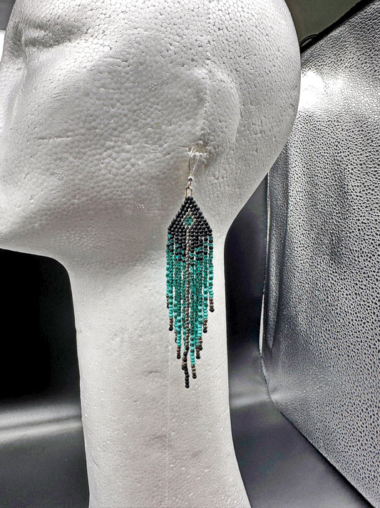 Boucles d'oreilles en perles artisanales indigènes - 'Plaid' - Sarcelle