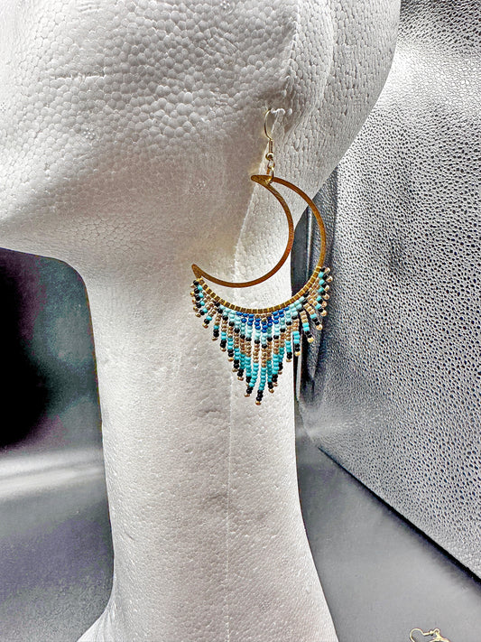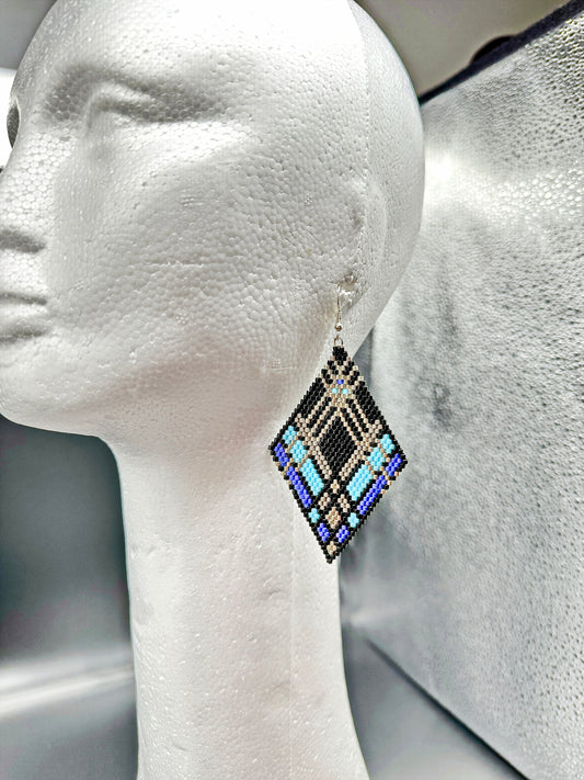 Boucles d'oreilles en perles artisanales indigènes - Série « Forme » - Blue Moon