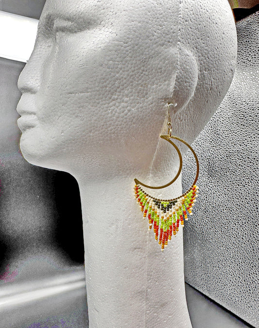 Boucles d'oreilles en perles artisanales indigènes - Série « Forme » - Lune rouge
