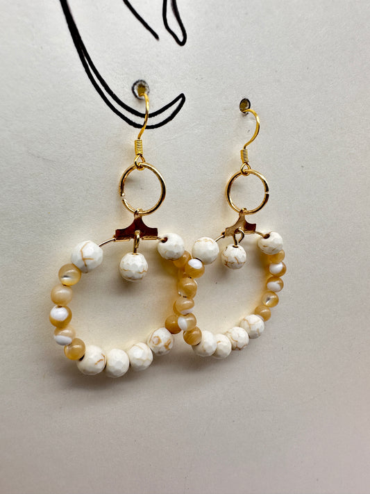 Boucles d'oreilles indigènes faites à la main - Howlite et nacre