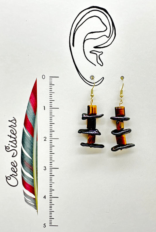 Boucles d'oreilles artisanales indigènes - 'Inukshuk' œil de tigre et nacre