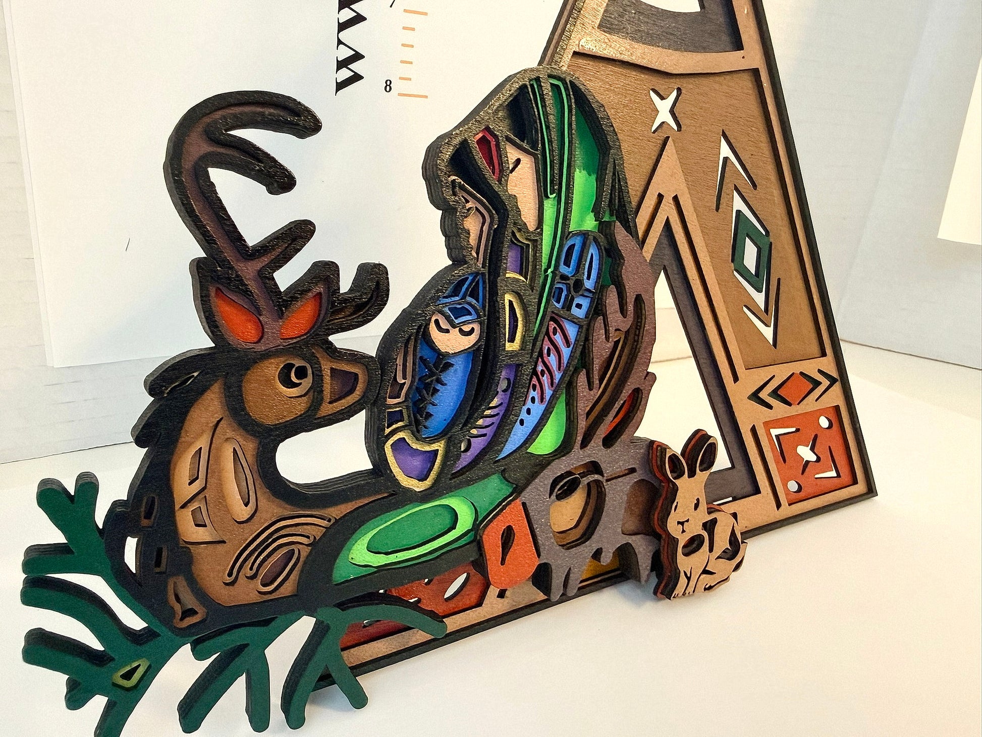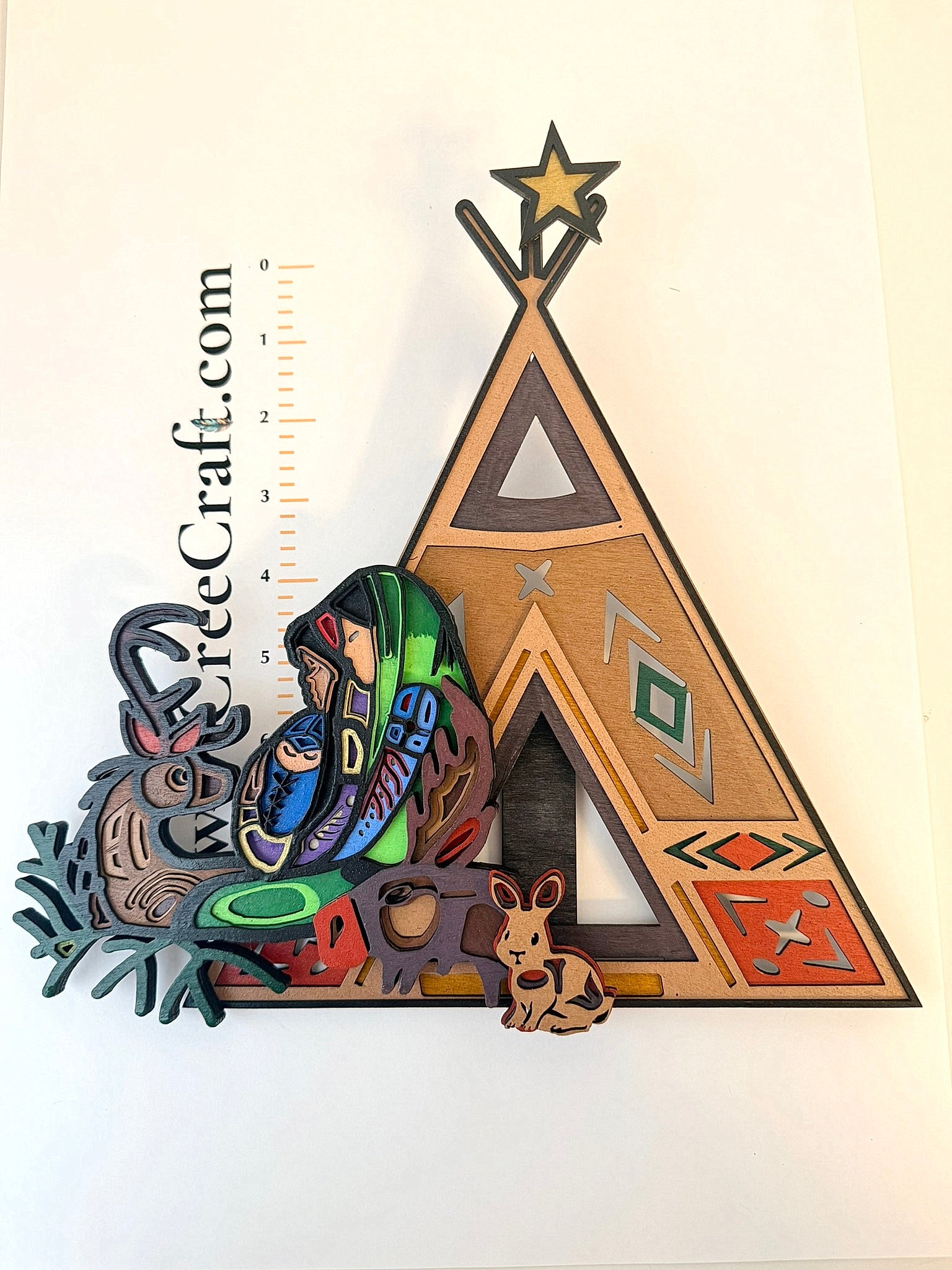 Celebrate the season with a Nativity scene thoughtfully reimagined through a First Nations artistic lens. This unique piece blends the familiar story of the Nativity with the visual language, patterns, and symbolism of Indigenous art, creating a meaningful fusion of tradition and culture.