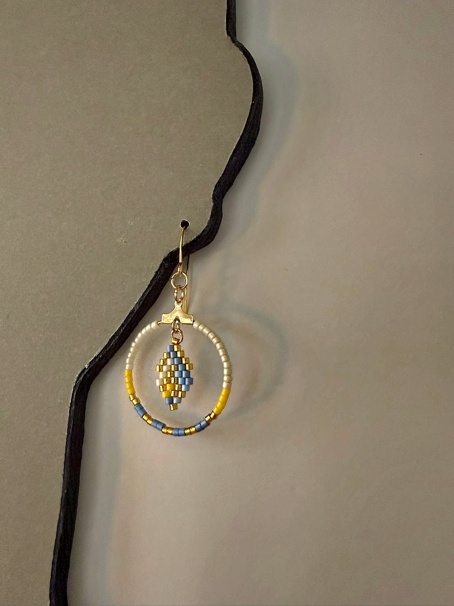 Indigenous Handmade Earrings - Miyuki Delica Beads (Cream, Blue & Gold)