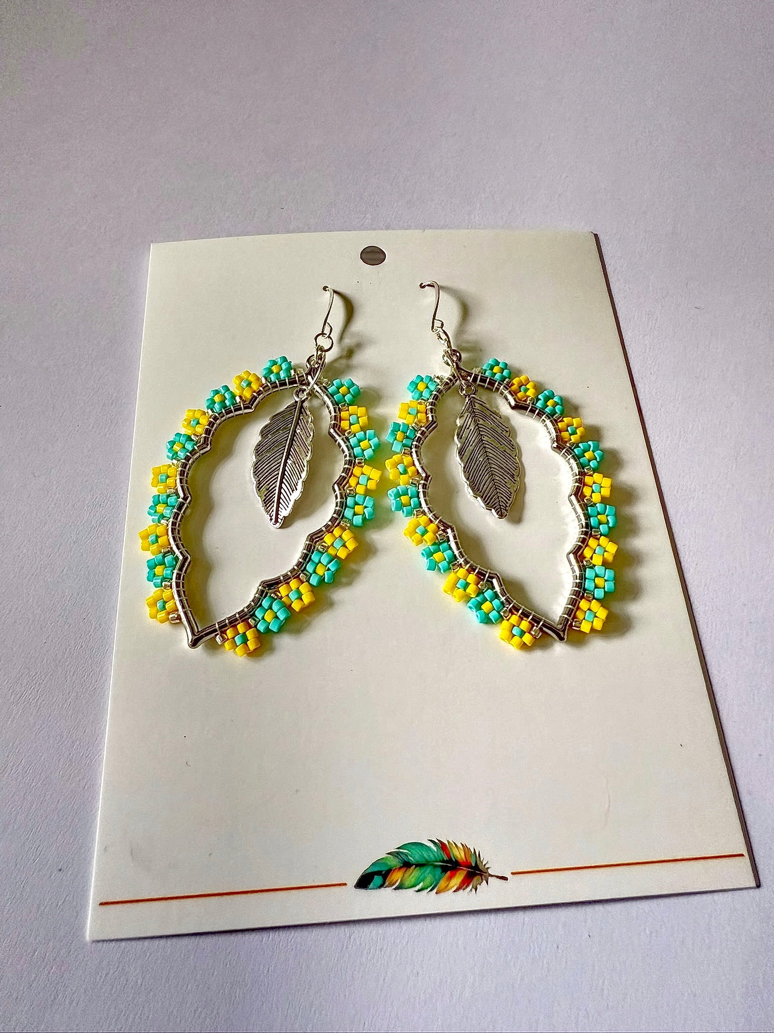 Miyuki Delica (Green & Yellow) - Indigenous Handmade Earrings