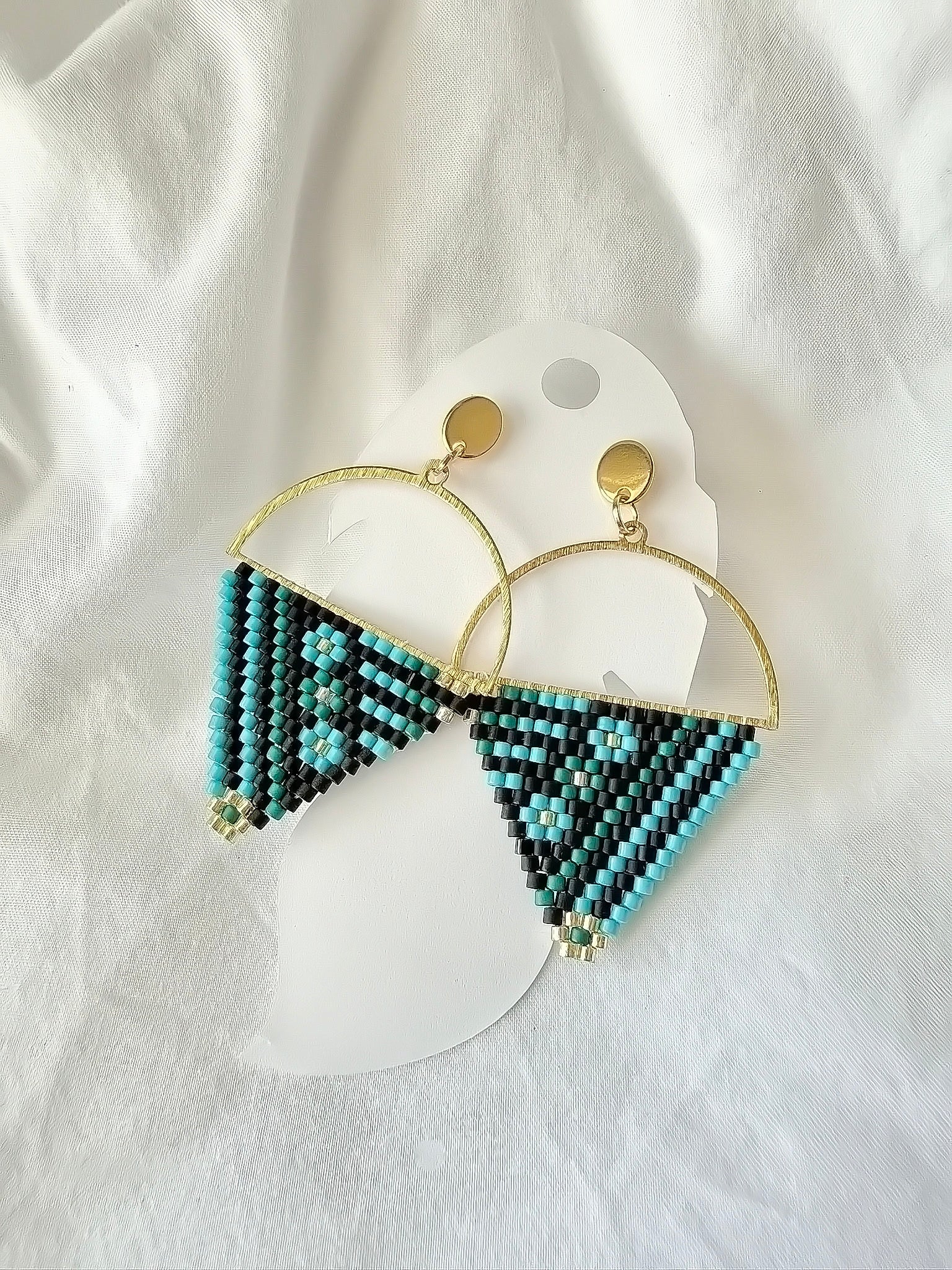 Miyuki Flower Triangle (teal) - Indigenous Handmade Earrings